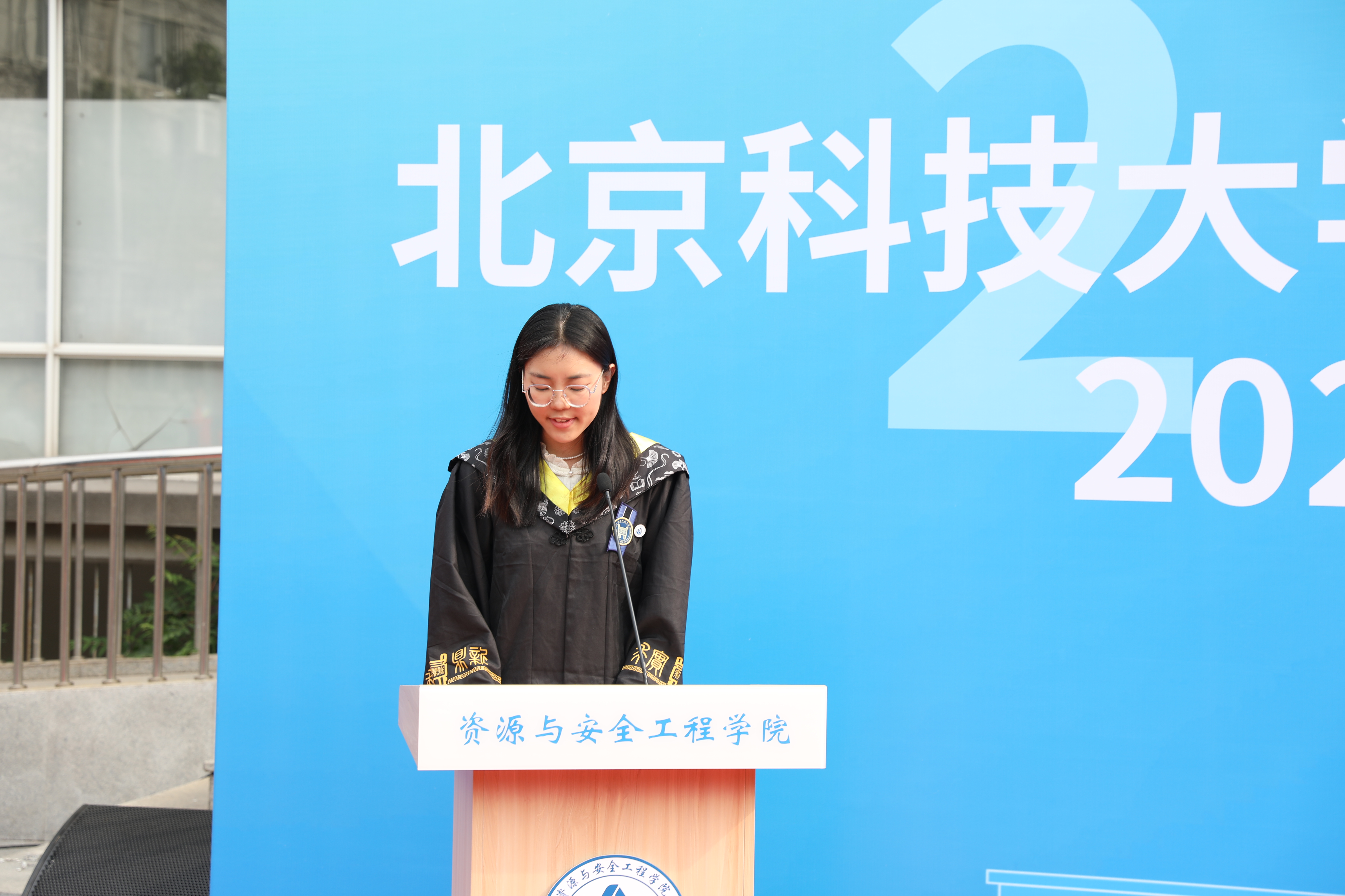 伟德bv1946第十九届校长奖章获得者、采矿工程专业2025届毕业生赵丽姗代表本科毕业生发言。她在发言中深情回顾了四年北科大时光,从初入校园的青涩到如今满载收获的蜕变,衷心感谢学院的培养、老师的教诲、父母的支持和同窗的陪伴,以及军训、班会、实习等等带来的成长。在学院的培养下,同学们都有了不同的未来选择,或潜心科研、或奔赴基层、或深入矿山,都体现了将青春融入国家需要、守护矿业安全的志向,倡议大家无论身在何方,永葆求知之心,在各行各业共同谱写“钢铁脊梁”的新篇章。